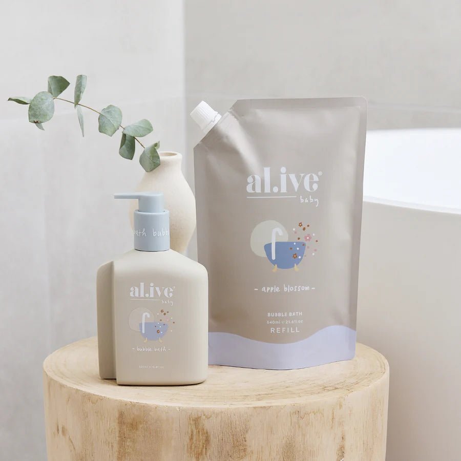 Our 640ml Bubble Bath Refill. A sustainable solution that doubles your bubble bath supply. Crafted in Australia with premium ingredients, the apple blossom scent and silky foaming bubbles, add an element of excitement for your little one while remaining gentle on the skin. Embrace eco-friendly practices, making each bath moment priceless.