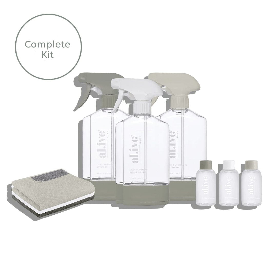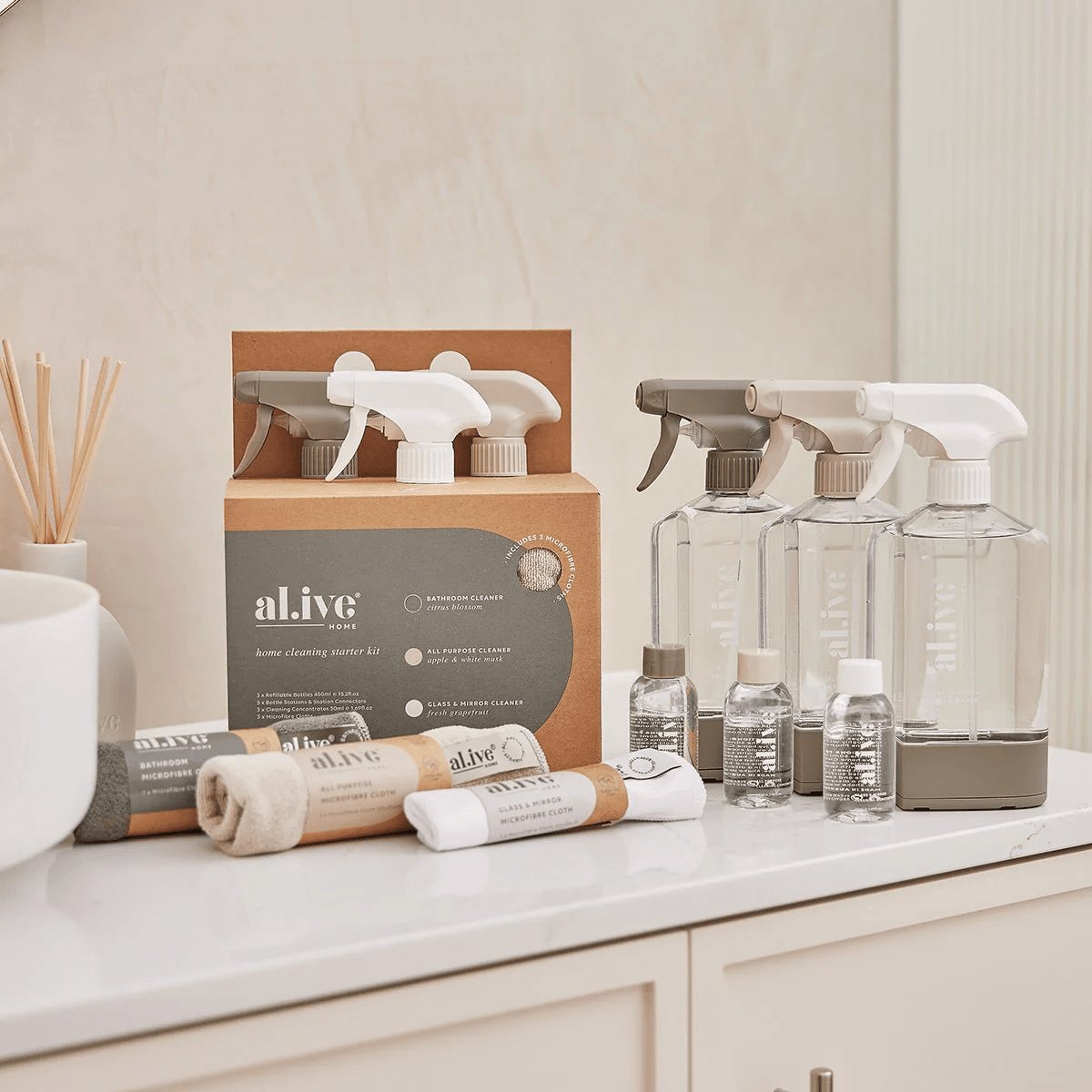 Designed for the modern home, the al.ive home Cleaning Starter Kit blends style, sustainability, and serious cleaning power. Each curated kit includes: