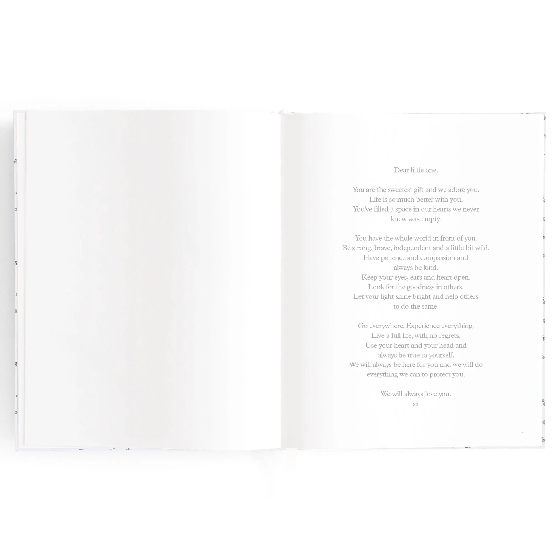 A beautiful keepsake for the whole family to enjoy. Includes: important milestones and firsts, family profiles, family tree and travel map, playgroup and daycare through to kindy and school years, time capsule, nicknames and celebrations, pets, friends, birthdays and more. 190 pages.