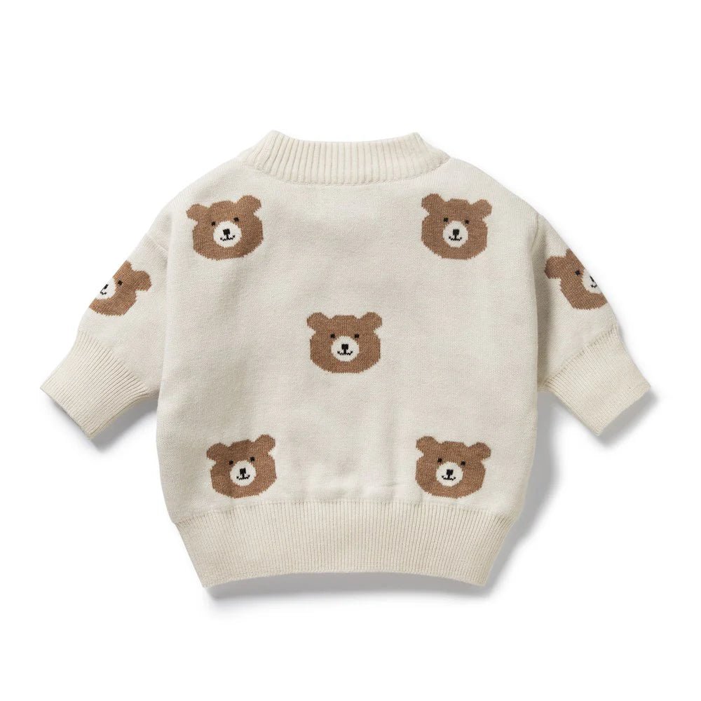 Get ready to cuddle up in style with our organic cotton, wool, and bamboo jacquard knit jumper. The roomy fit and ribbed cuffs and neckline provide comfort, while the cute bear face design adds some playful charm. Stay warm and trendy, baby and kid approved!