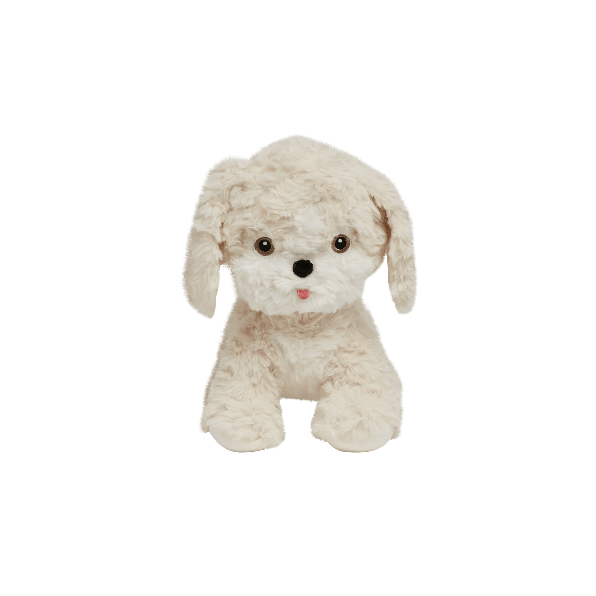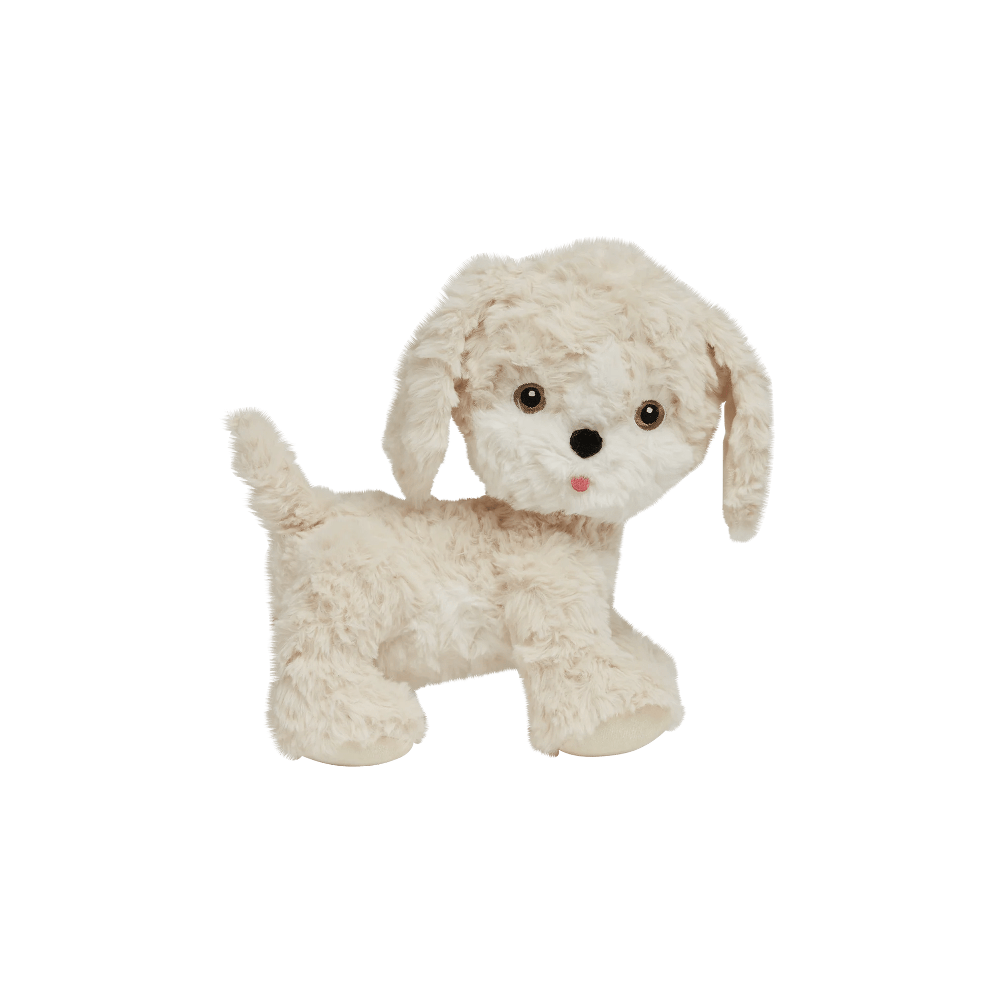 Made from soft recycled plush with gentle curls and velvety ears, Cookie is poseable from head to tail—able to sit, lie down, and stand tall. The embroidered face is pure sweetness, and tucked onto one paw is a special rainbow surprise that makes this pup truly one-of-a-kind.