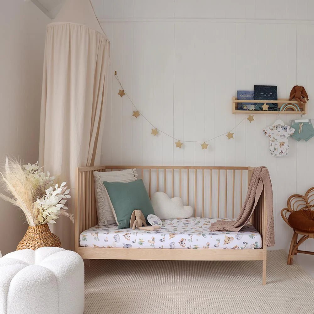 Our Snuggle Hunny Dragon Fitted Cot Sheet is made from snuggly soft organic stretch cotton jersey. It is stretchy so fits most cot mattress sizes and comes in a matching drawstring bag.