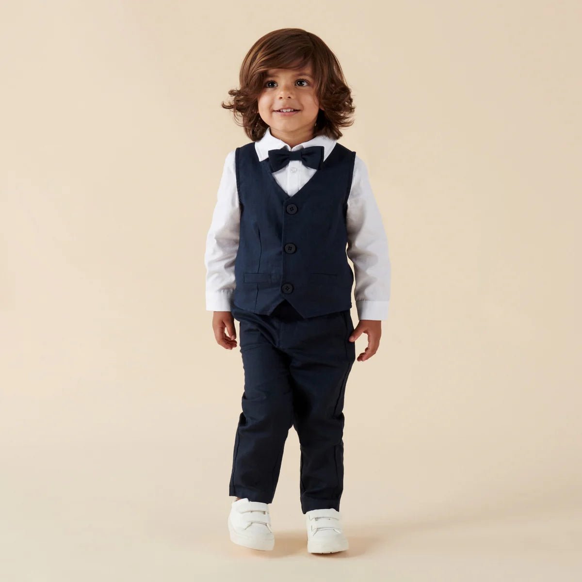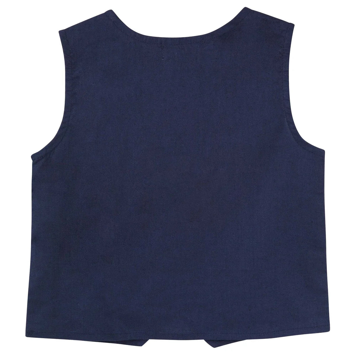 The Finley Linen Vest is tailored for tiny trendsetters. With front button detailing and a clean silhouette, it's the perfect finishing piece for suiting up your little man in style. Crafted in a soft linen/cotton blend, it layers effortlessly over rompers or formal shirts — creating a look that’s polished, timeless and impossibly cute.