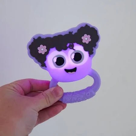 Brand new and created just for you, little ones! Our Glo Pals Light-Up Rattle is designed to light up little minds and foster sensory development from the very first shake. An easy-to-hold grippy handle invites babies to reach and grasp, refining and developing fine motor skills. The Light-Up Rattle magically lights up when shaken, providing instant visual feedback. Batteries included.