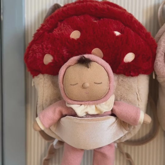 The velvet-lined front pocket is perfect for tiny treasures or a beloved Dinky or Dozy (especially the Mushroom Dozy!), while the lush interior adds a hint of hidden magic. Whether for pretend play or a real adventure, it’s the perfect pairing for fairy-tale fun.