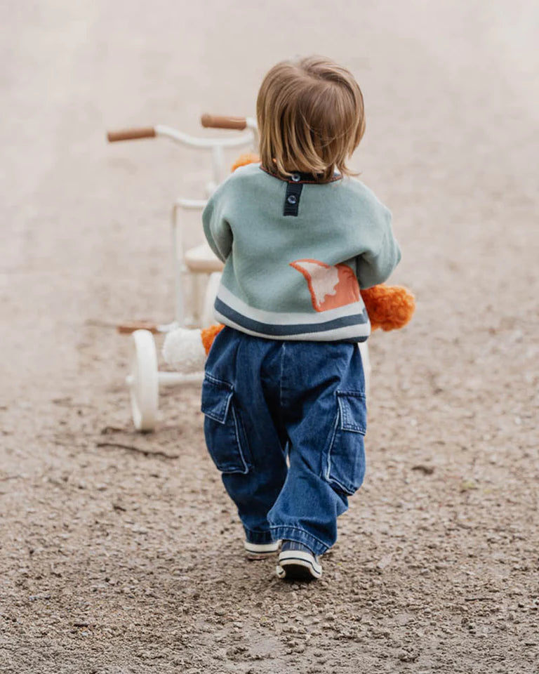 A little everyday essential with a cool, utility twist. Our baby cargo pants are crafted in soft indigo denim with roomy pockets and an easy pull-on waist, made for play, adventures, and comfy all-day wear. Also available in a matching bigger boys' style.