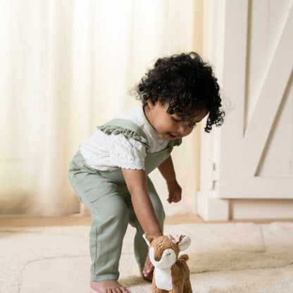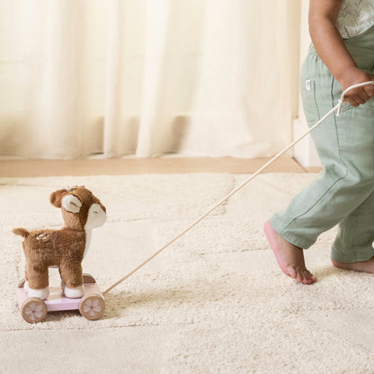 - Encourages Active Play: The pull-along design allows children to guide the soft and cuddly deer on a pink wooden carriage, encouraging walking and promoting physical activity