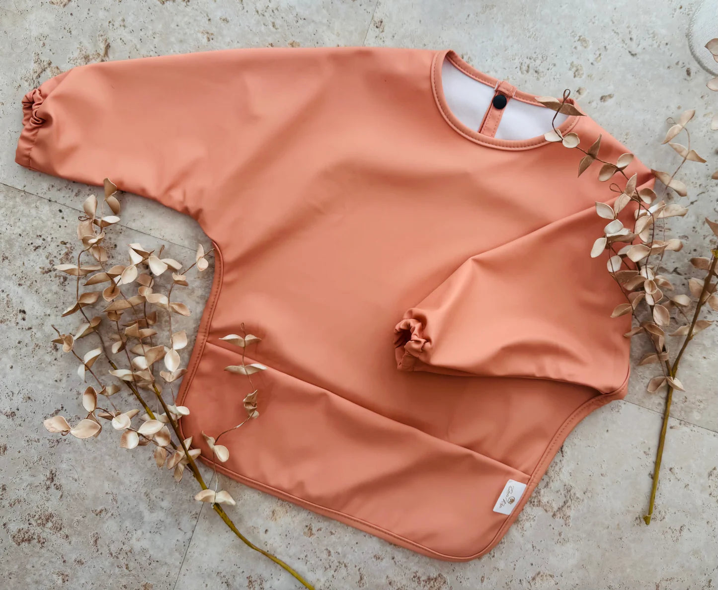 Made from high-quality, waterproof fabric, this smock bib is perfect for feeding time, arts and crafts, painting, and messy play. The gorgeous clay color is both modern and versatile, while the long sleeves provide maximum protection. The easy-to-clean material wipes down quickly, making cleanup a breeze for busy parents.